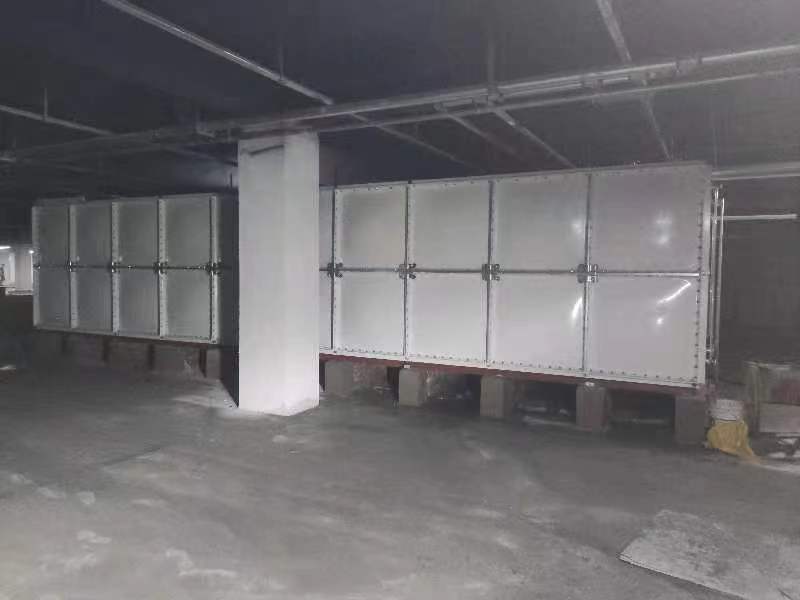 我司承接河北省滄州任丘市水岸張橋-悅府9臺玻璃鋼人防水箱安裝完畢,此水箱為人防儲水使用。