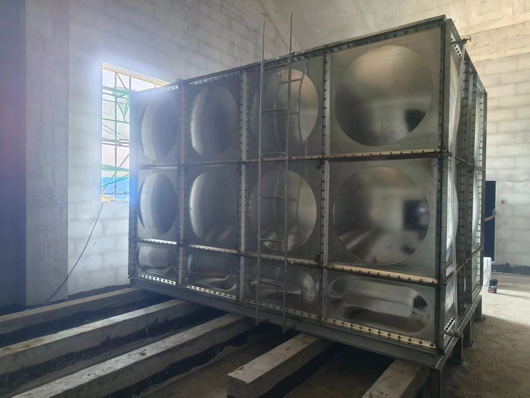 我司承接的河北省武邑縣高速服務(wù)區(qū)樓頂24立方鍍鋅鋼板消防水箱已經(jīng)安裝試水完成,此次水箱用做消防儲水使用。裝配式鍍鋅鋼板水箱是目前較為新型的水箱。該水箱制造、安裝不受土建施工影響,不用焊接設(shè)備,水箱表面采用熱鋅防腐處理,使水質(zhì)不受二次污染,并符合建筑產(chǎn)品標(biāo)準化、系列化、工廠化要求。因其優(yōu)秀的抗氧化能力和較不銹鋼價格低的性能的越來越多的應(yīng)用到實際生活中。